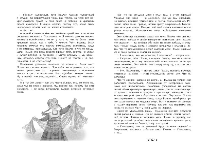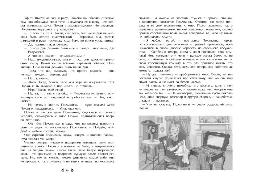 Повесть «Поллианна» публикуется в живом и образном переводе Константина Молькова. Выразительные иллюстрации, напоминающие по стилю рисунки подростков, создала московская художница Елена Запесочная.