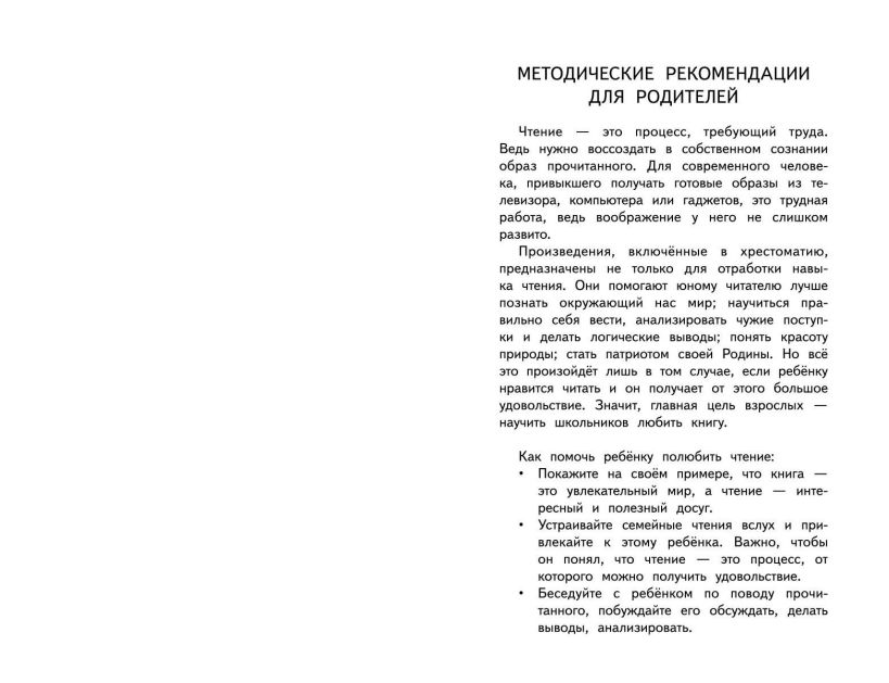 Хрестоматия по литературному чтению с методическими рекомендациями призвана расширить кругозор школьника и сформировать у него интерес к чтению. В неё включены как большая часть произведений школьной программы, так и дополнительные тексты писателей и поэтов XX веков, детская классика народов мира.