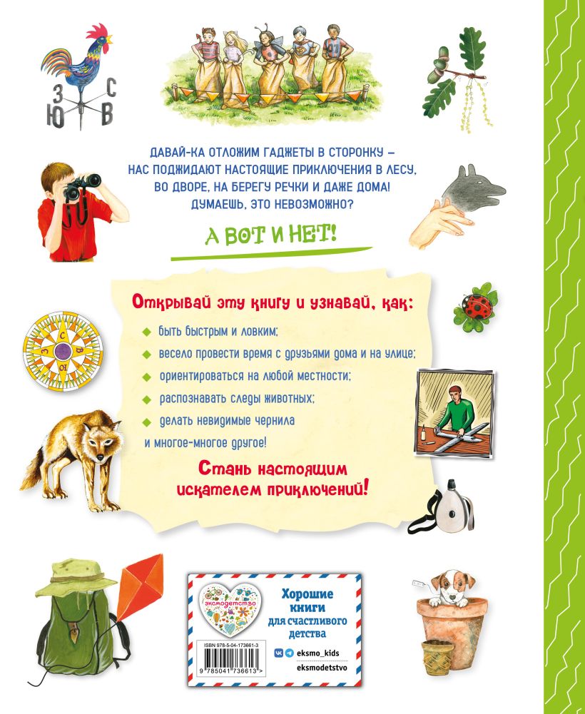 Давай-ка отложим гаджеты в сторонку – нас поджидают настоящие приключения в лесу, во дворе, на берегу речки и даже дома! Думаешь, это невозможно? А вот и нет! Открывай эту книгу и узнавай, как: