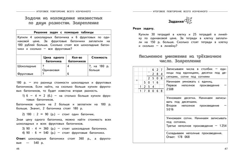 Пособие от издательства «Эксмо», соответствующее ФГОС, разработано специалистом с многолетним опытом работы и станет отличным помощником для учеников 3 класса в отработке умений и навыков, полученных на уроках математики. Решение большого количества примеров и задач на сложение и вычитание в пределах 1000, умножение и деление, деление с остатком, знакомство с долями даст возможность школьникам в дальнейшем избежать вычислительных ошибок и довести навыки счёта до автоматизма. Занимаясь по книге, учащиеся научатся анализировать информацию и понимать учебную задачу, а также смогут закрепить пройденный материал, восполнить пробелы в знаниях, развить математические способности, повысить успеваемость по предмету. Задания в тренажере построены таким образом, чтобы не повторять, а дополнять упражнения, которые предлагаются в школе. Благодаря этому его можно использовать в сочетании с любыми из существующих учебников по математике. Кроме того, в серию входят и пособия по русскому языку для 1, 2, 3 и 4 класса. Только постоянная практика позволит школьнику уверенно чувствовать себя на уроках и получать отличные оценки.