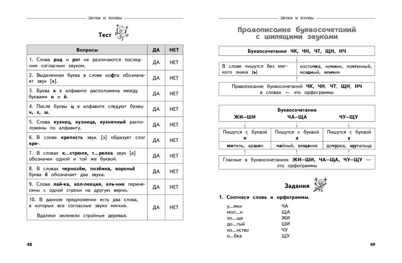 Пособие по русскому языку от издательства «Эксмо» подготовлено в соответствии с требованиями ФГОС для начальной школы и может быть использовано с любым из действующих учебников для 1 класса. Удобный тренажер с интересным современным макетом поможет ребёнку улучшить грамотность, восполнить пробелы, углубить и систематизировать знания. Занимаясь, школьник не только отработает основные темы школьной программы: правописание ЖИ-ШИ, ЧА-ЩА, ЧУ-ЩУ, ЧК, ЧН, НЧ, НЩ, парных согласных в конце слова, имен собственных, предлогов и др., но и научится работать по плану, то есть выполнять определенный алгоритм действий, который поможет ему осознанно применять правила. Когда навык грамотного письма будет доведен до автоматизма, результат в виде твердых знаний и отличных оценок не заставит себя ждать.