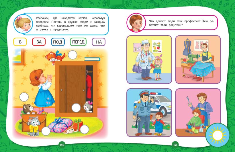 В конце каждого занятия ребенок должен подвести итог — раскрасить солнышко, если справился с заданием, и половину солнышка, если допустил ошибки или попросил помощи. Это позволяет развивать у него ответственность и самостоятельность.