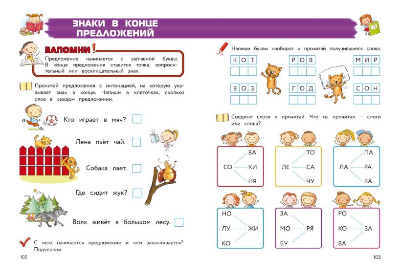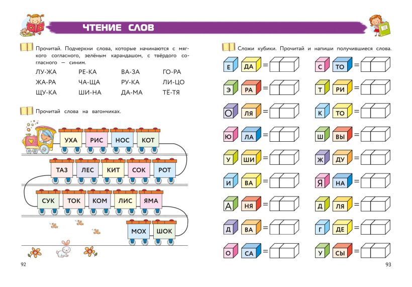 Выполняя интересные игровые задания, ребенок познакомится с буквами, поймет, как образуются слоги, сможет самостоятельно прочесть слоги, слова, предложения, небольшие тексты, научится пересказывать.