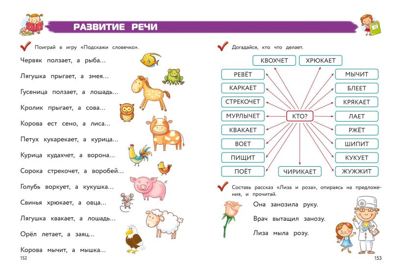 По книге можно заниматься несколько лет, если ребенку 5 лет, а можно пройти ее за год, если ему скоро в школу. Во время занятий малыш не будет отвлекаться, так как все задания даются в игровой форме, а яркие цветные картинки сразу привлекут внимание любознательного непоседы.