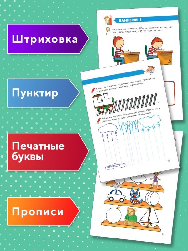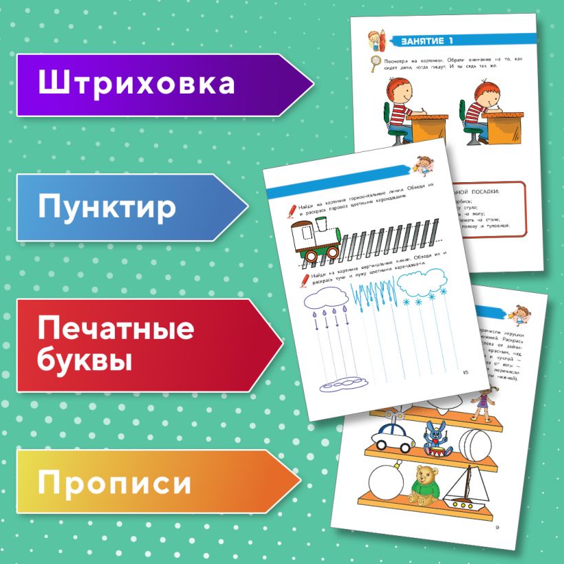 Основная задача пособия — развитие у детей графических навыков и эффективная подготовка к школе.