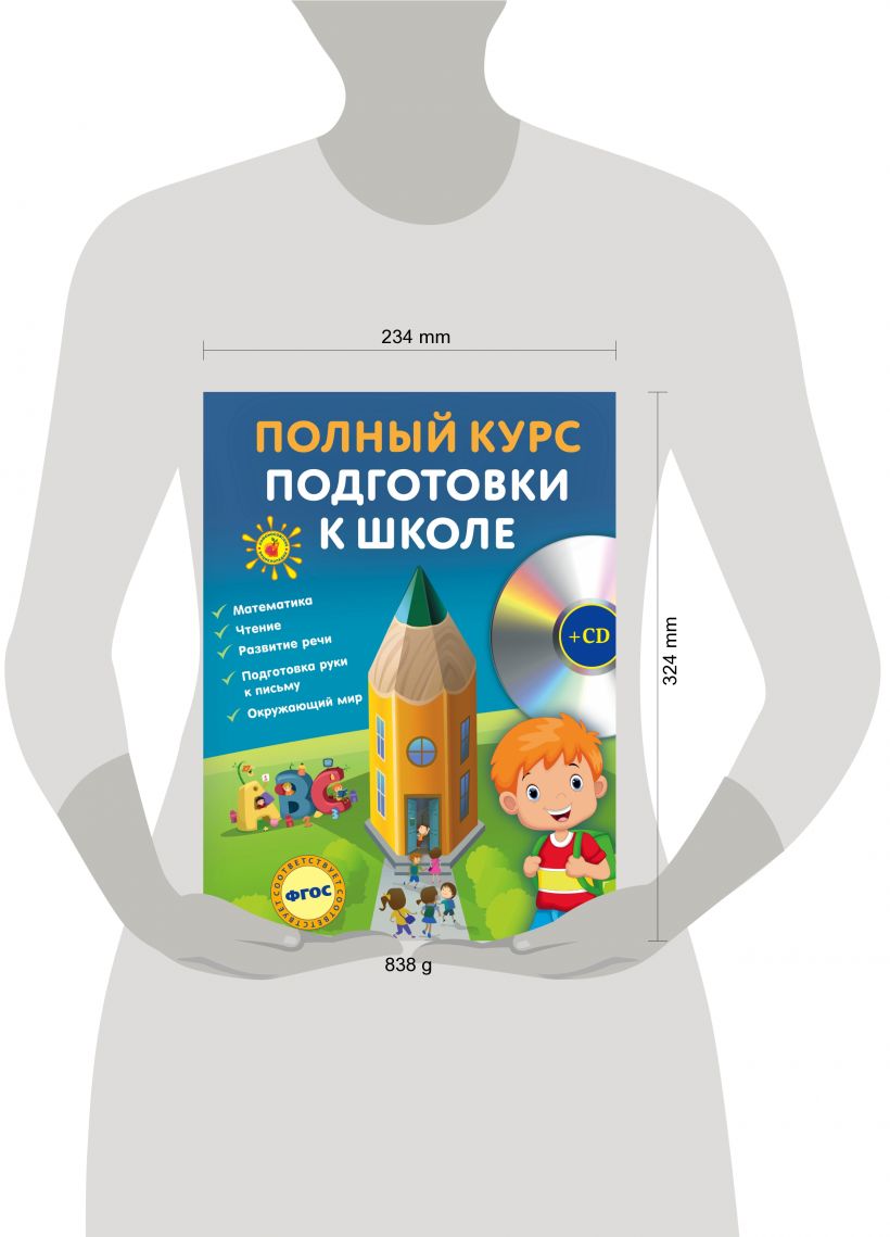 Полный курс подготовки к школе с CD диском охватывает основные разделы дошкольного образования: математика, чтение, развитие речи, подготовка руки к письму, окружающий мир. Занимаясь по книге, малыш быстро и без труда научится читать, писать и считать, решать примеры и задачи, узнает много нового об окружающем мире. Задания, составленные опытными педагогами, помогут родителям оценить уровень подготовки ребенка к школе, а также вовремя ликвидировать пробелы в знаниях. На СД-диске – обучающие игры, которые дадут возможность детям учиться играя.