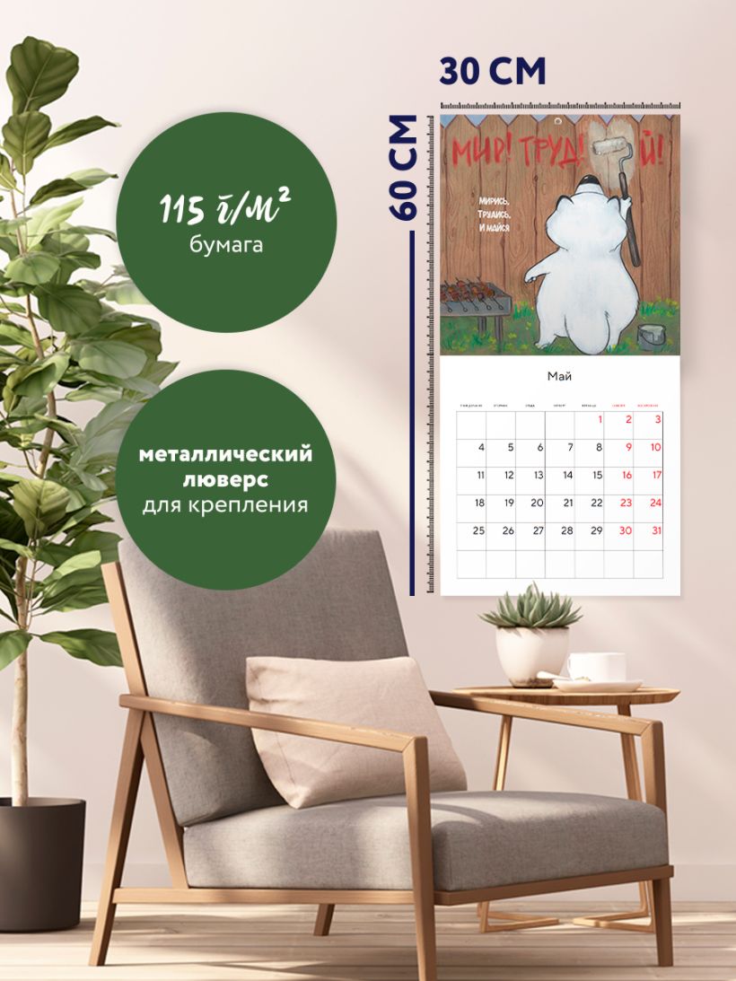 Наши настенные календари отличаются высоким качеством исполнения! Тщательно подобранные иллюстрации, напечатанные на глянцевой бумаге высочайшего качества, станут настоящим украшением дома, а в календарной сетке найдется место для ваших планов: большие клетки позволят делать записи и организовать свой год! В календаре также отмечены все государственные праздники.