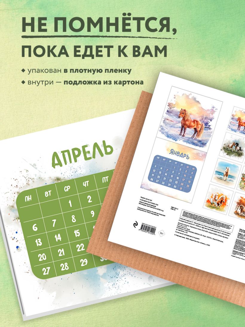 Календарь с красивыми иллюстрациями пони в мягких, пастельных тонах наполнен теплом и спокойствием. Очаровательные животные и акварельный стиль создают атмосферу уюта, которая будет радовать вас каждый месяц. Идеальный выбор для тех, кто восхищается нежной эстетикой и природой.