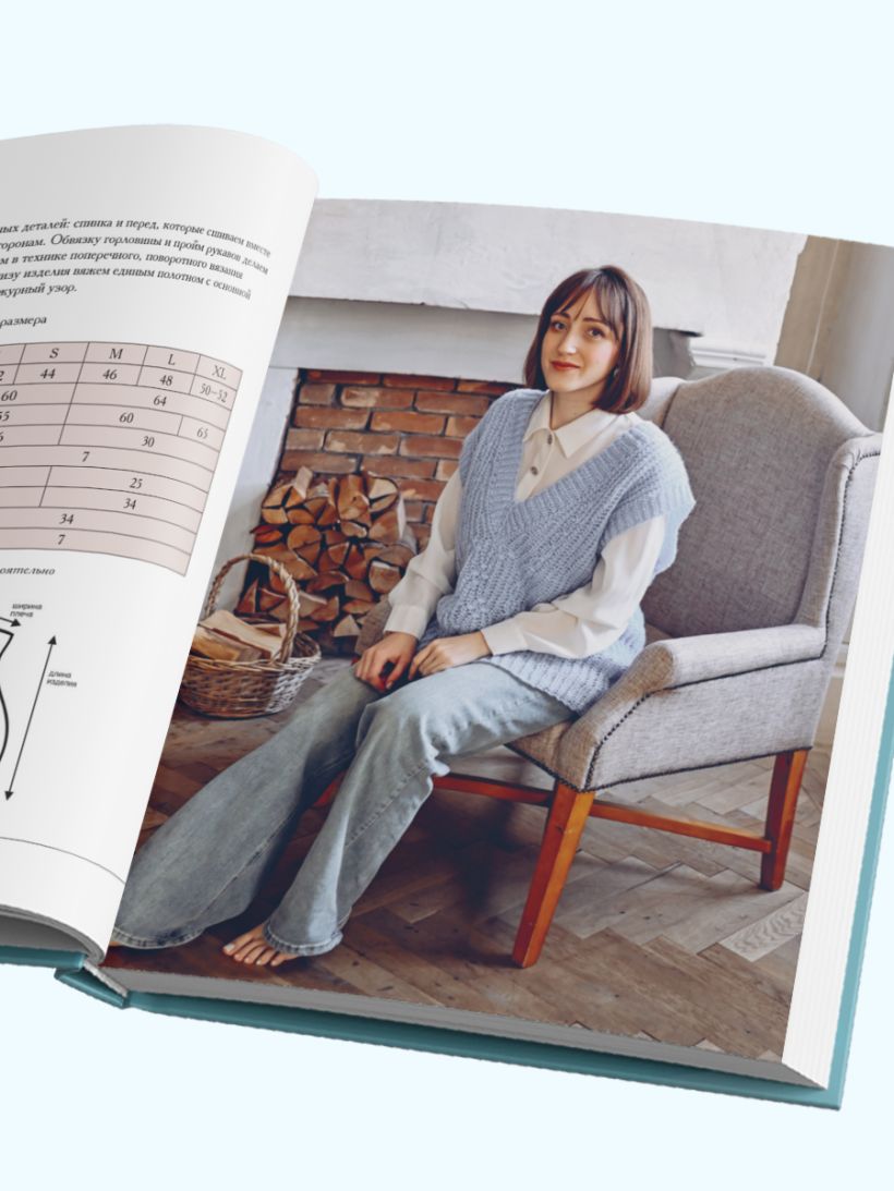 - Советы по выбору пряжи, расчету плотности и самостоятельному проектированию изделий.