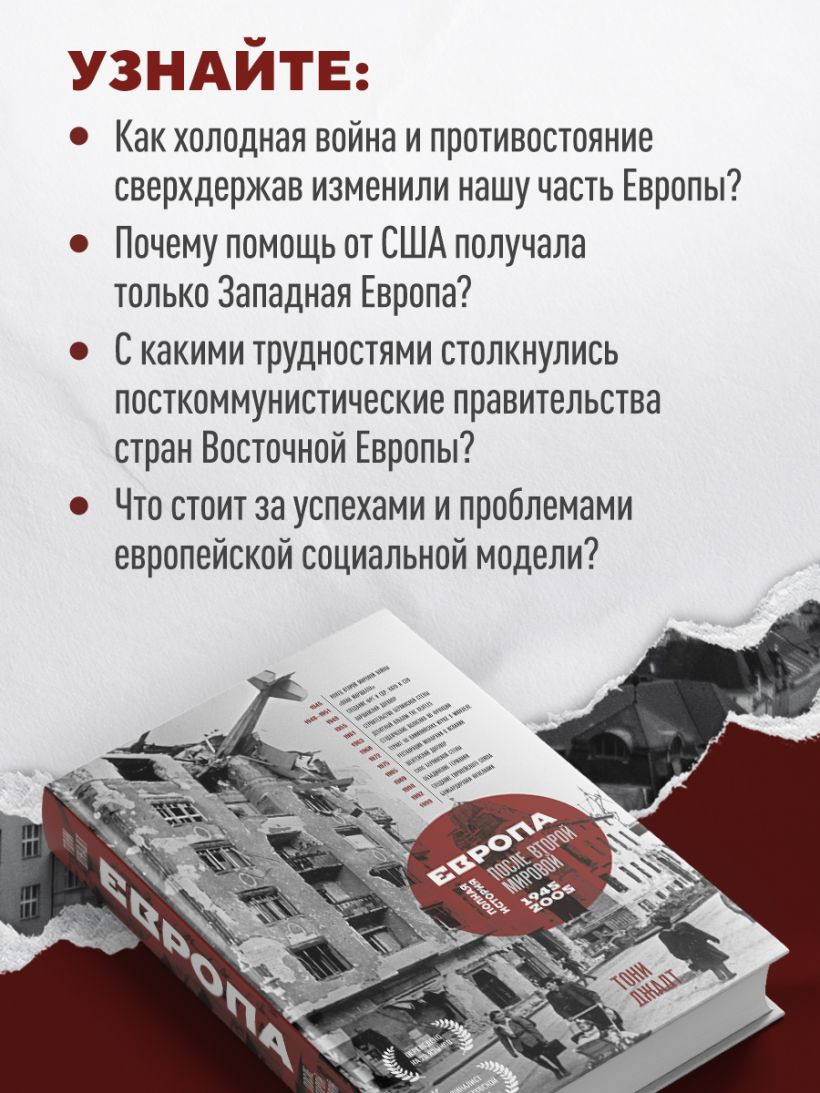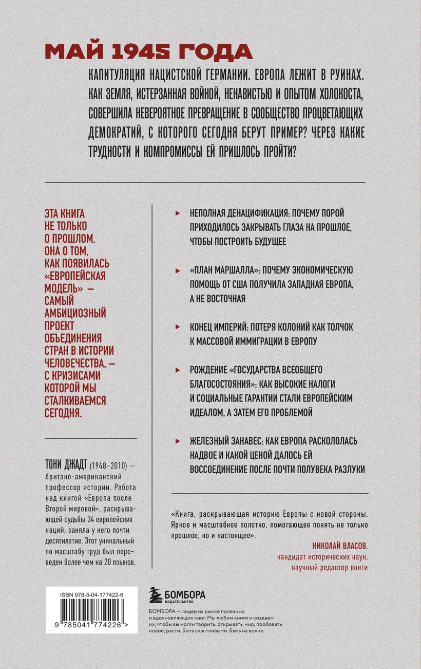 Эта книга — самое полное исследование истории Европы второй половины ХХ века и ценный инструмент для понимания ее современного устройства. Над своей рукописью Тони Джадт работал почти десять лет, изучив материалы на шести языках, и в итоге описал судьбы 34 народов.