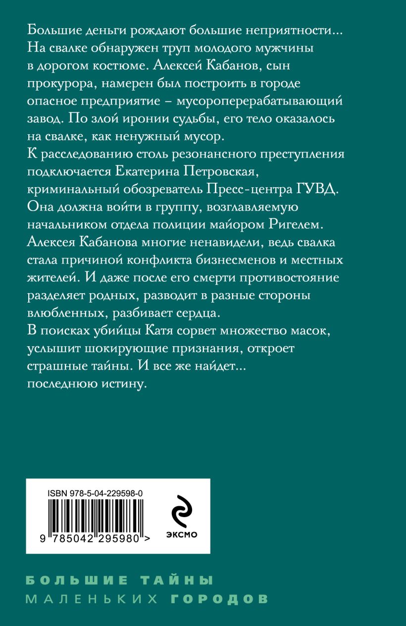 На свалке обнаружен труп молодого мужчины в дорогом костюме. Алексей Кабанов, сын прокурора, намерен был построить в городе опасное предприятие — мусороперерабатывающий завод. По злой иронии судьбы, его тело оказалось на свалке, как ненужный мусор. К расследованию столь резонансного преступления подключается Екатерина Петровская, криминальный обозреватель Пресс-центра ГУВД. Она должна войти в группу, возглавляемую начальником отдела полиции майором Ригелем. Алексея Кабанова многие ненавидели, ведь свалка стала причиной конфликта бизнесменов и местных жителей. И даже после его смерти противостояние разделяет родных, разводит в разные стороны влюбленных, разбивает сердца. В поисках убийцы Катя сорвет множество масок, услышит шокирующие признания, откроет страшные тайны. И все же найдет… последнюю истину.