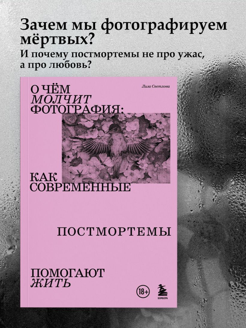 В книге вы найдете не только все актуальные исследования, но и инструкции по самопомощи при потере родных и друзей, а также личные истории и мировой опыт исследователей и фотографов, занимающихся постмортемами. Часть фотографий внутри предоставлены самим автором, часть прислали люди, которые поделились своим опытом проживания горя.