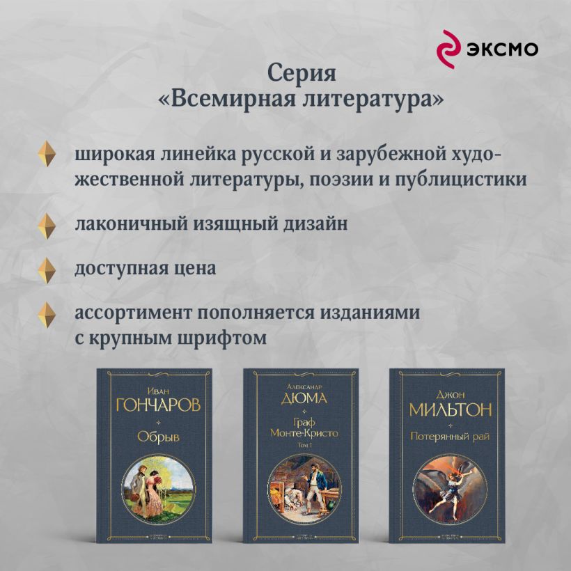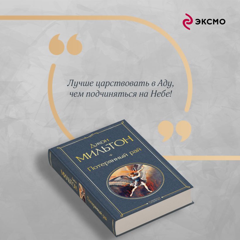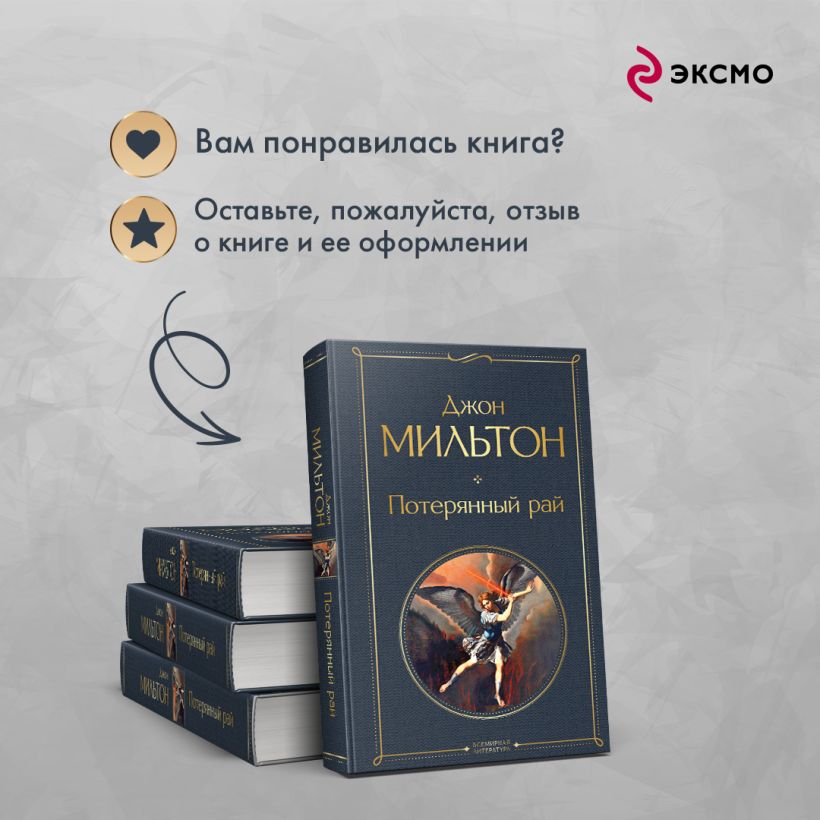 «Потерянный рай» — это эпическая поэма Джона Мильтона, написанная в XVII столетии, которая стала яркой и широко известной интерпретацией библейского сюжета о грехопадении человека. Поэма Мильтона поражает своей масштабностью и философской глубиной, внимательно изучая пределы человеческой свободы, вопросы божественного предопределения и борьбы добра со злом. В «Потерянном рае» Мильтон повествует об искушении Адама и Евы , создавая пронзительный портрет человеческой трагедии и борьбы за искупление. Книга считается одним из величайших мировых литературных произведений.