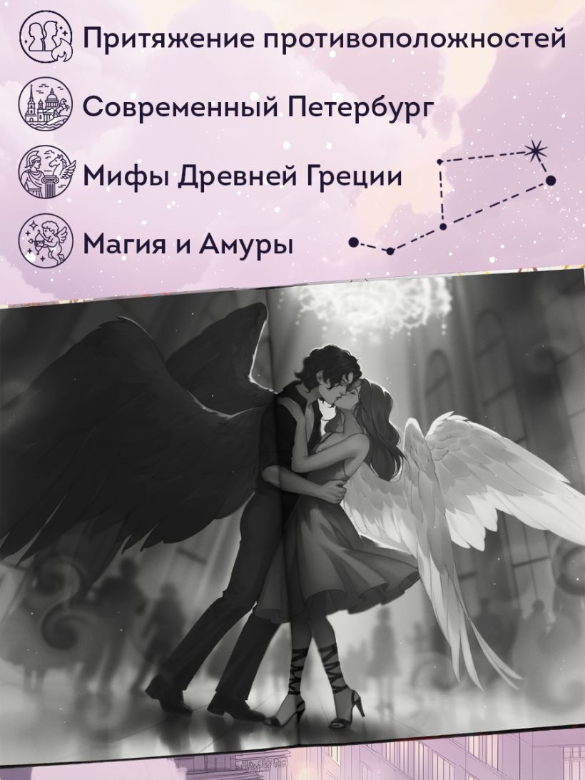 Знали ли вы, что в современном Петербурге живут Амуры, заставляющие наши сердца полюбить? Питер полон любовной магии, как светлой, так и темной. Здесь и Амур-гадалка, правдивым предсказаниям которой никто не верит, и фонтан «Нептун» с магической водой, и любовные напитки, и роскошная селебрити-суккуб, что сравнивает парней с десертами. Лира, девушка-Амур, живет в Питере, но не верит в свое ремесло. Но когда встречает Валентина, их губы сплетаются в страстном поцелуе: теперь она обречена. Ведь ее новый знакомый — Темный Амур, который убивает девушек. Но что, если этот коварный соблазнитель влюбится сам? И тогда сам станет жертвой чьей-то игры…