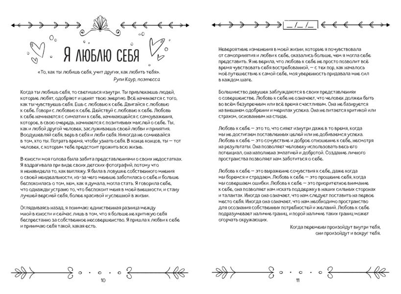 В этой книге вы найдете множество полезных советов о том, как полюбить себя, повысить свою самооценку, избавиться от страхов, научиться справляться со стрессом и многое-многое другое. Увлекательный формат с лайфхаками, упражнениями и тестами, а также стильные иллюстрации, делают издание отличным подарком для девочек, которые хотят жить в гармонии с собой.