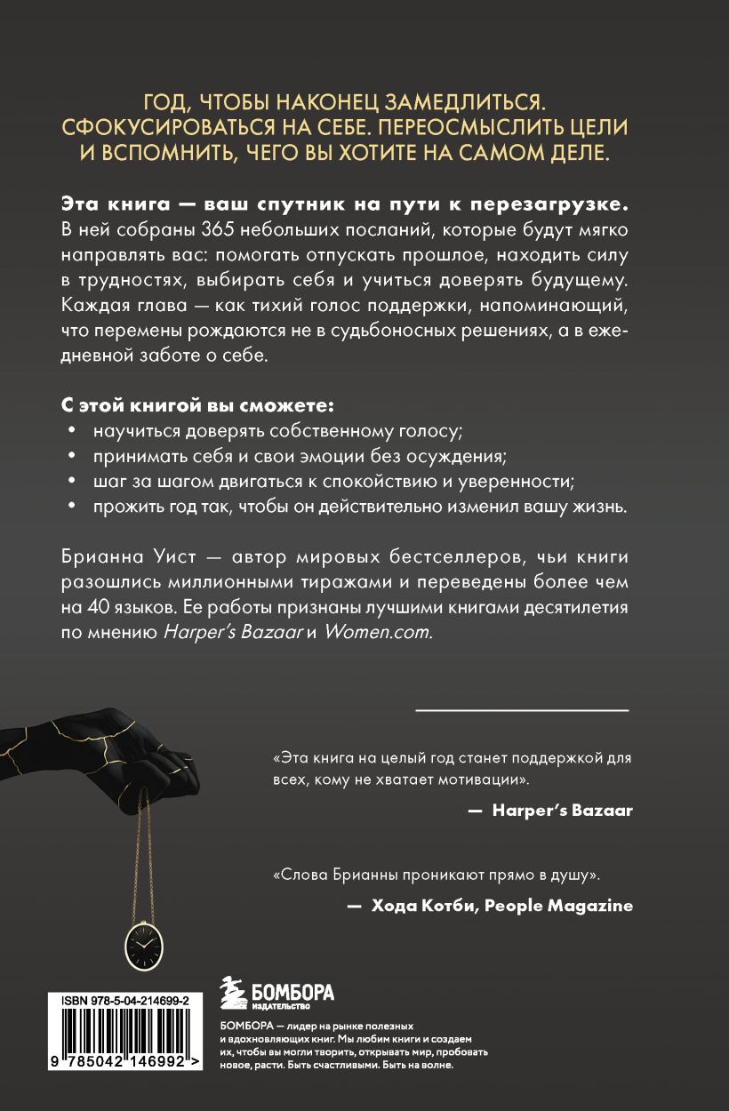 Эта книга — ваш спутник на пути к перезагрузке. В ней собраны 365 небольших посланий, которые будут мягко направлять вас: помогать отпускать прошлое, находить силу в трудностях, выбирать себя и учиться доверять будущему. Каждая глава — как тихий голос поддержки, напоминающий, что перемены рождаются не в судьбоносных решениях, а в ежедневной заботе о себе.