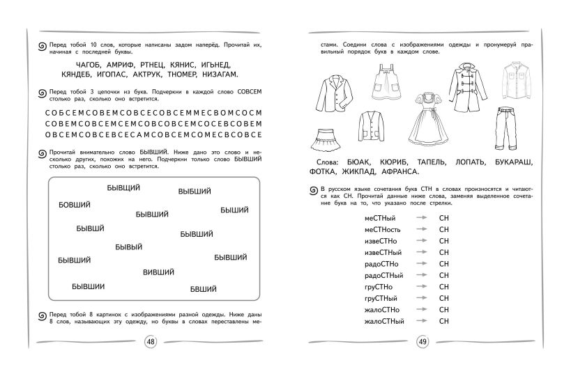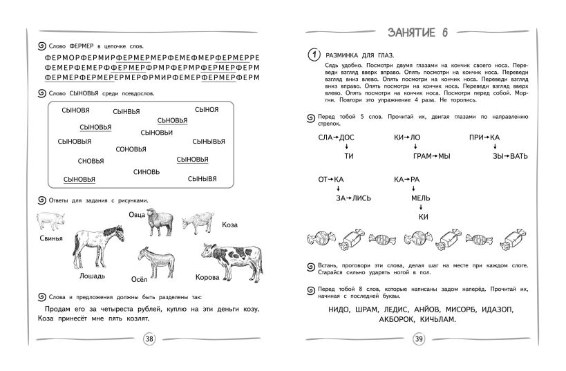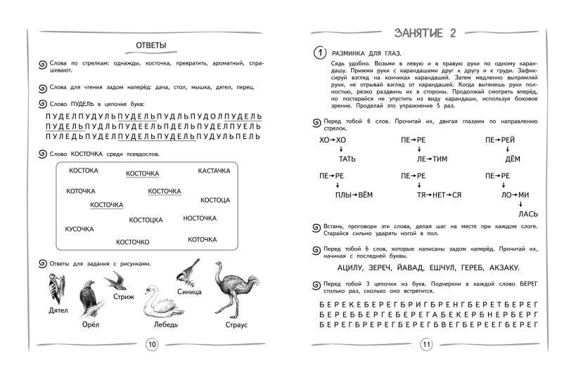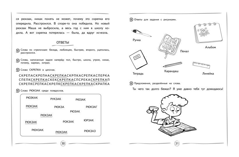 Книга издательства «Эксмо» подготовлена педагогом-практиком с целью увеличения скорости чтения и глубины понимания прочитанного. Нейропсихологический подход, используемый в пособии, способствует более эффективному обучению чтению и активизации работы мозга. Тренажер включает в себя 8 занятий по 13-14 заданий в каждом. В конце занятий имеются ответы для самопроверки. Выполняя увлекательные задания, ребенок будет искать слова в цепочках из букв; находить правильно написанное слово; читать словесные пирамидки, стихотворения, сказки по ролям разными голосами. Использование пособия с нестандартными игровыми заданиями в учебном процессе или в качестве дополнительного материала позволит ребенку повысить успеваемость, своевременно устранить возможные трудности в усвоении школьного материала без привлечения специалистов. Комплекс представленных в пособии упражнений способствует полноценному формированию высших психических функций, развитию межполушарного взаимодействия, что необходимо для успешного обучения в школе и нормального психоэмоционального развития ребёнка.