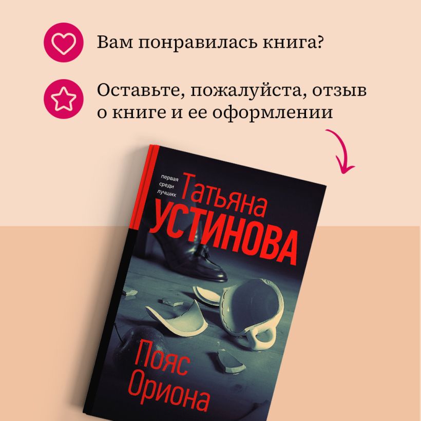 В недавнем интервью Татьяна Устинова призналась, что так прикипела душой к героиням ее бестселлера «Серьга Артемиды», что планирует написать продолжение, где речь пойдет о новых приключениях представительниц трех поколений одной семьи. Сказано — сделано! В ее новом остросюжетном романе «Пояс Ориона» на первый план выходит Тонечка – любящая и любимая жена, дочь и мать. Счастливая женщина! А еще она известный сценарист и может быть рядом со своим мужем-режиссером всегда и везде – и на работе, и на отдыхе. Они с Александром прекрасная пара, живут душа в душу, понимают друг друга с полуслова… Или Тонечке только кажется, что это так? Однажды Александр отправляется в Нижний Новгород, чтобы встретиться с давним другом, которого Тонечка не знает. Кто такой этот Кондрат Ермолаев? Муж говорит – повар, а похоже, что бандит. Во всяком случае, как раз в присутствии столичных гостей его задерживают по подозрению в убийстве жены. Александр явно что-то скрывает, встревоженная Тонечка пытается разобраться в происходящем сама – и оказывается в самом центре детективной истории, сюжет которой ей, сценаристу, совсем непонятен. Ясно одно: в опасности и Тонечка, и ее дети, и идеальный брак с прекрасным мужчиной, который оказывается совсем не тем, за кого выдавал себя…