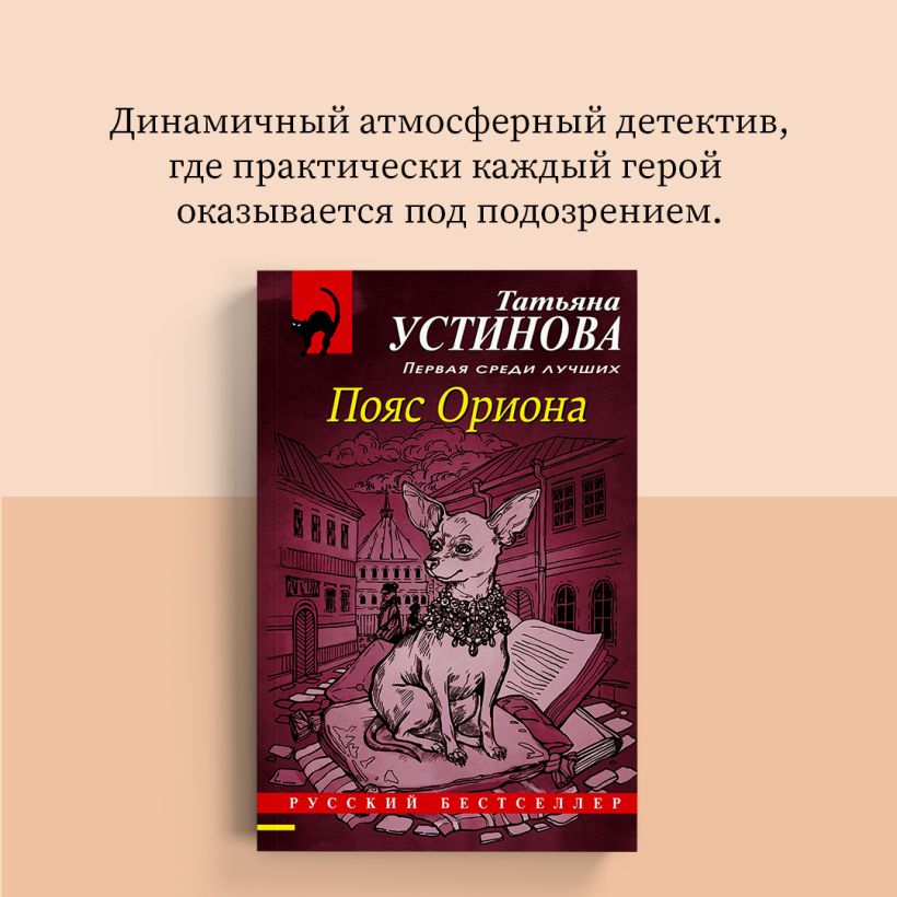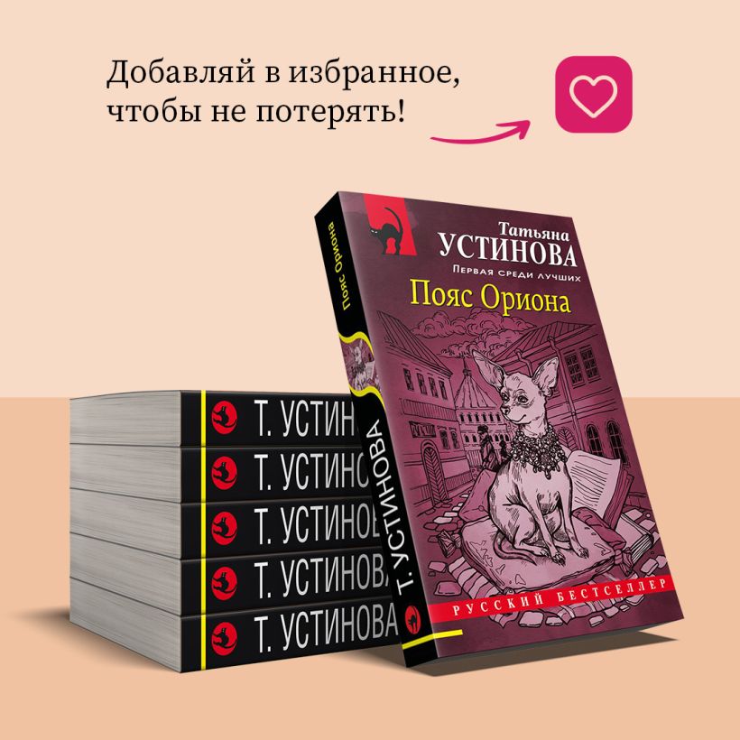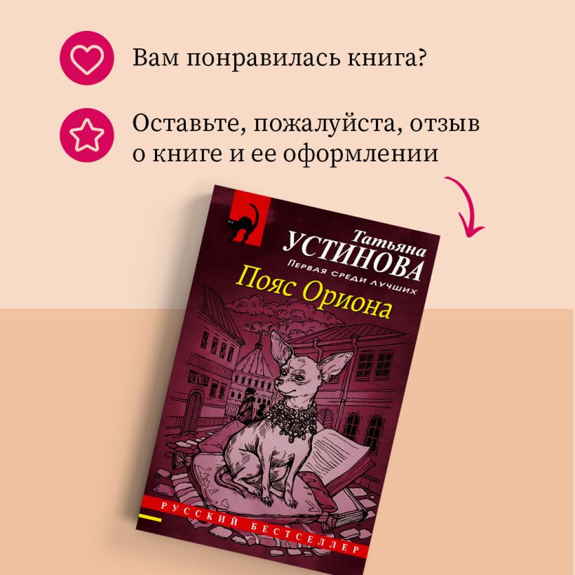 В недавнем интервью Татьяна Устинова призналась, что так прикипела душой к героиням ее бестселлера «Серьга Артемиды», что планирует написать продолжение, где речь пойдет о новых приключениях представительниц трех поколений одной семьи. Сказано — сделано! В ее новом остросюжетном романе «Пояс Ориона» на первый план выходит Тонечка – любящая и любимая жена, дочь и мать. Счастливая женщина! А еще она известный сценарист и может быть рядом со своим мужем-режиссером всегда и везде – и на работе, и на отдыхе. Они с Александром прекрасная пара, живут душа в душу, понимают друг друга с полуслова… Или Тонечке только кажется, что это так? Однажды Александр отправляется в Нижний Новгород, чтобы встретиться с давним другом, которого Тонечка не знает. Кто такой этот Кондрат Ермолаев? Муж говорит – повар, а похоже, что бандит. Во всяком случае, как раз в присутствии столичных гостей его задерживают по подозрению в убийстве жены. Александр явно что-то скрывает, встревоженная Тонечка пытается разобраться в происходящем сама – и оказывается в самом центре детективной истории, сюжет которой ей, сценаристу, совсем непонятен. Ясно одно: в опасности и Тонечка, и ее дети, и идеальный брак с прекрасным мужчиной, который оказывается совсем не тем, за кого выдавал себя…