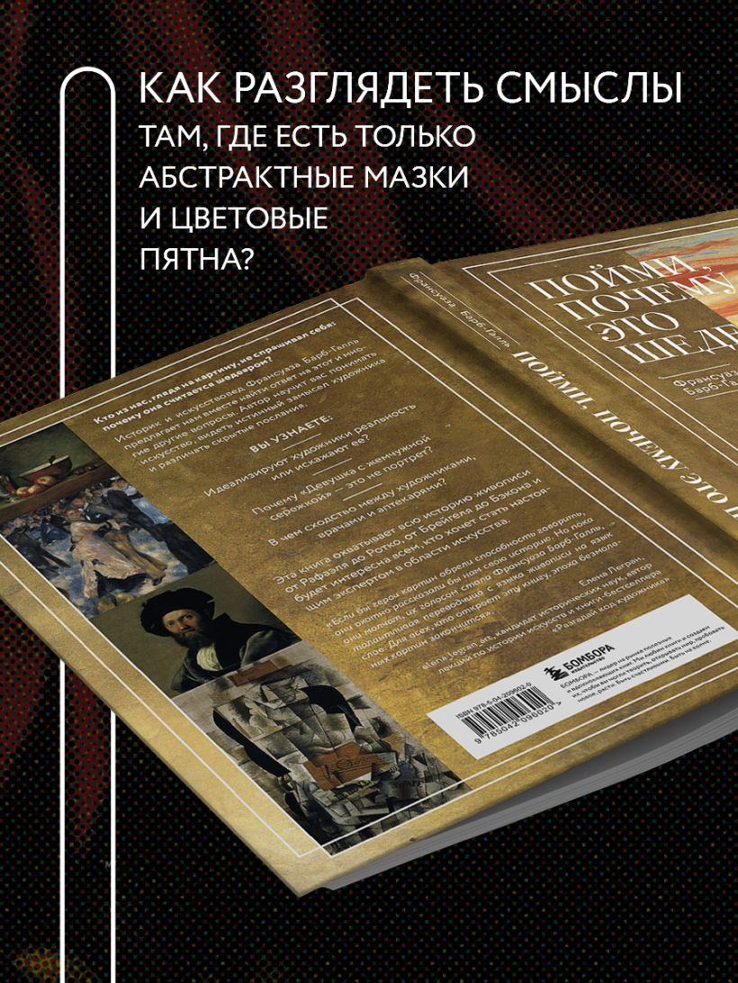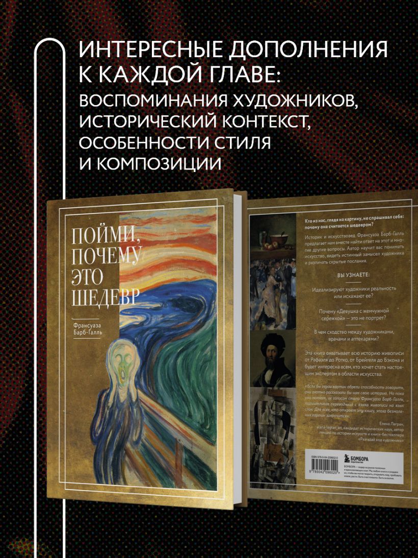 Переиздание бестселлера Франсуазы Барб-Галль, искусствоведа, преподавателя Школы Лувра. В нем автор предлагает расшифровать то, что хотел сказать художник, и научиться понимать живопись. Для этого нужно внимательно изучить картину, довериться своим глазам и своим ощущениям. В этой книге подробно разбираются шедевры мировой живописи, среди которых «Весна» Боттичелли, «Мулен де ла Галет» Ренуара, «Постоянство памяти» Дали, «Крик» Мунка, «Мадонна с младенцем и святой Анной» Да Винчи.