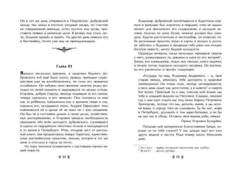 Роман Александра Сергеевича Пушкина «Дубровский» неизменно интересен как любителям приключений, так и поклонникам романтической прозы. История благородного разбойника, полюбившего дочь своего злейшего врага, покоряет читателей на протяжении десятилетий.