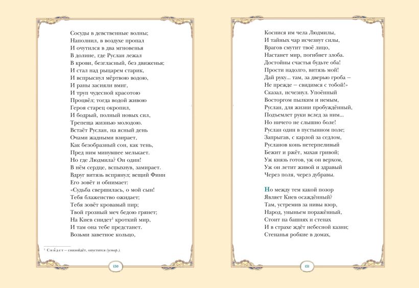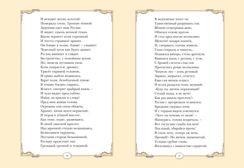 Волшебная стихотворная сказка «Руслан и Людмила» принесла А. С. Пушкину всероссийскую славу. Великий русский поэт открыл миллионам читателей диковинное Лукоморье, где обитают герои русских былин и преданий, а учёный кот на золотой цепи известен во всём мире едва ли не больше, чем его создатель. Открывая книгу, мы погружаемся в фантастический мир могучих богатырей и коварных колдунов, грозных сражений и романтических встреч. И каждый раз, перевернув последнюю страницу, мечтаем вернуться в мир волшебных строф и необыкновенных событий.