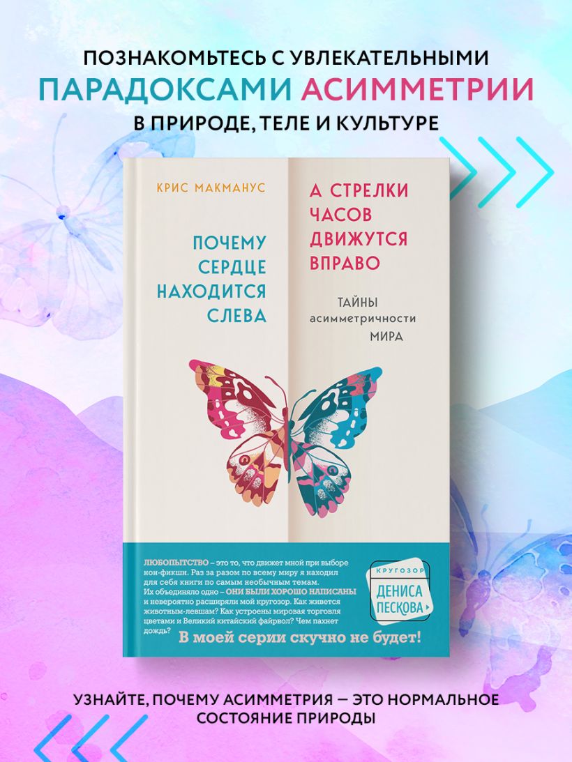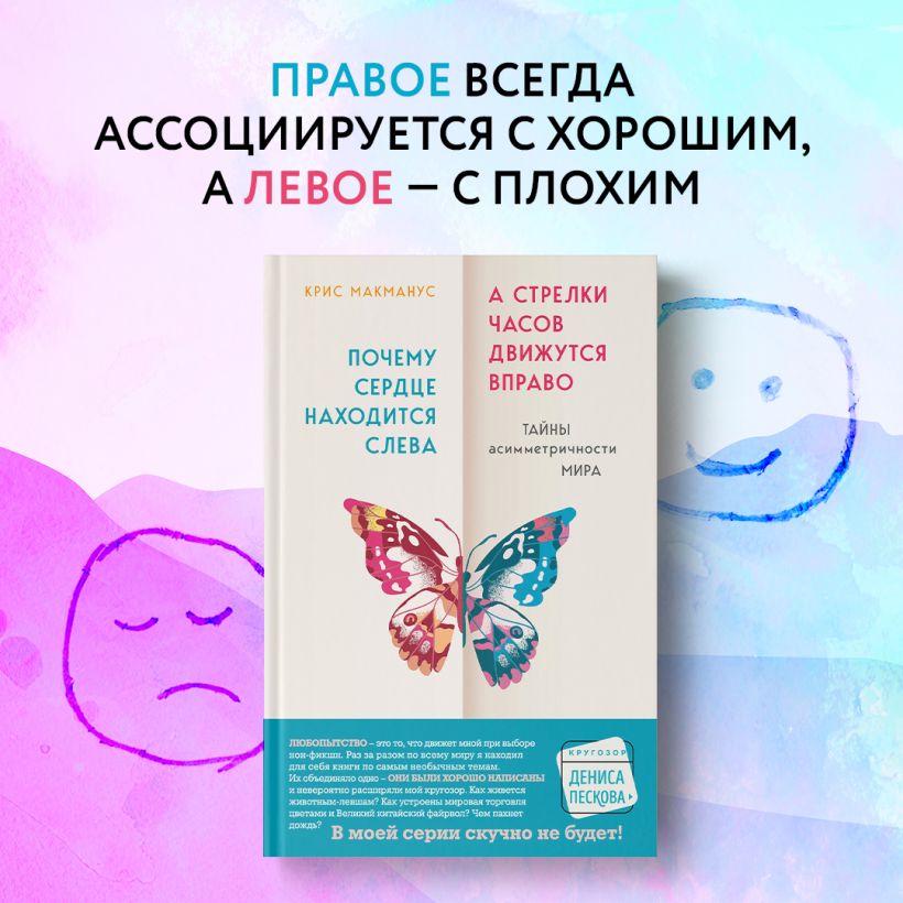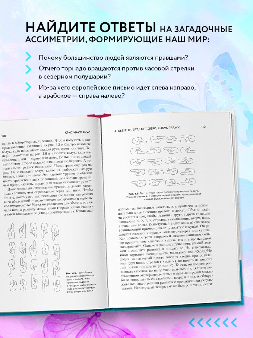 Почему правая перчатка не налезает на левую руку? Зачем в природе существует такое решение для, казалось бы, симметричных конечностей? Зачем вообще живой и неживой природе право и лево? Нам кажется, что стремление к симметрии - это приближение к идеалу, к красоте, однако именно асимметрия нормальное состояние природы. Профессор Крис Макманус, видный исследователь хиральности, приглашает отправиться в увлекательное путешествие - через медицину, психологию, физику и историю культуры - в поисках ответов на загадочные ассиметрии, формирующие наш мир.