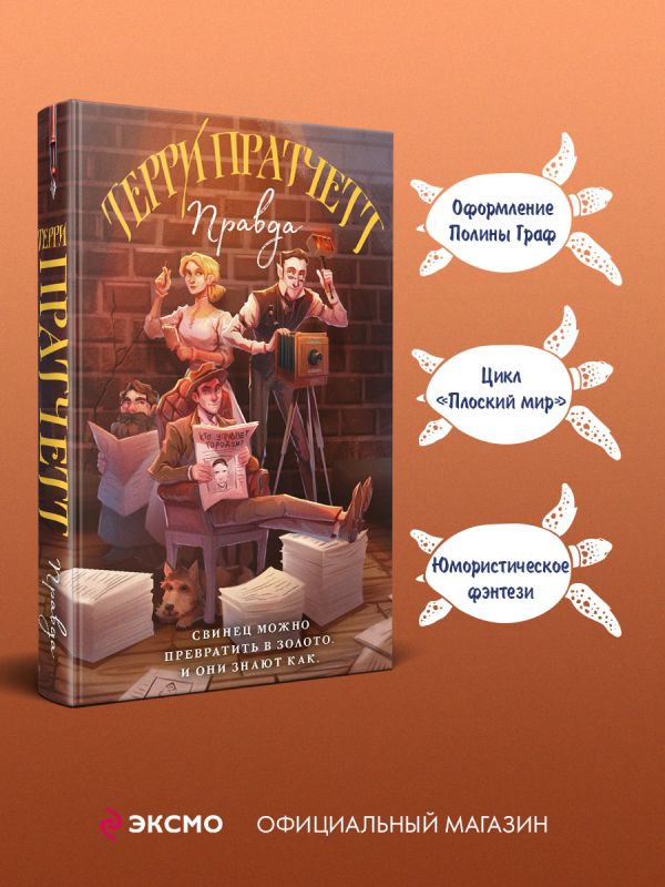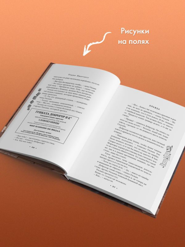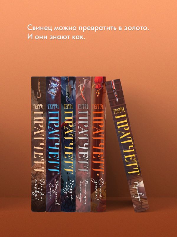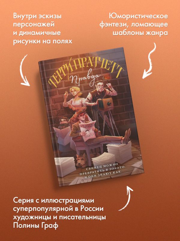 Переиздание знаменитого цикла «Плоский мир» сэра Терри Пратчетта, который стал легендой и классиком еще при жизни. Оформление суперпопулярной в России художницы и писательницы Полины Граф. Внутри эскизы персонажей и сюжетных сцен, литеры на страницах, портрет автора и дополнительная цветная иллюстрация.