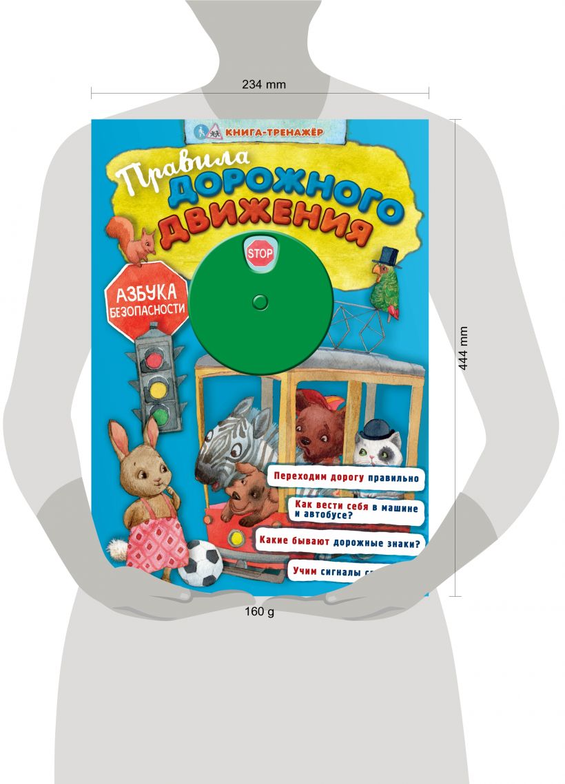 Самые первые правила дорожного движения для ребёнка! Книга-тренажёр поможет малышу развить наблюдательность и осторожность, научит определять возможные опасности на улице и познакомит с основными правилами дорожного движения. С книгой-тренажёром обучение будет интересным и весёлым: внутри вас ждёт подвижный модуль для изучения знаков дорожного движения, а ещё - увлекательная настольная игра с машинками-фишками и кубиком, которая понравится всей семье! Стихотворение известного советского поэта В.И. Лебедева-Кумача "Про умных зверюшек", иллюстрации Олега Гончарова.