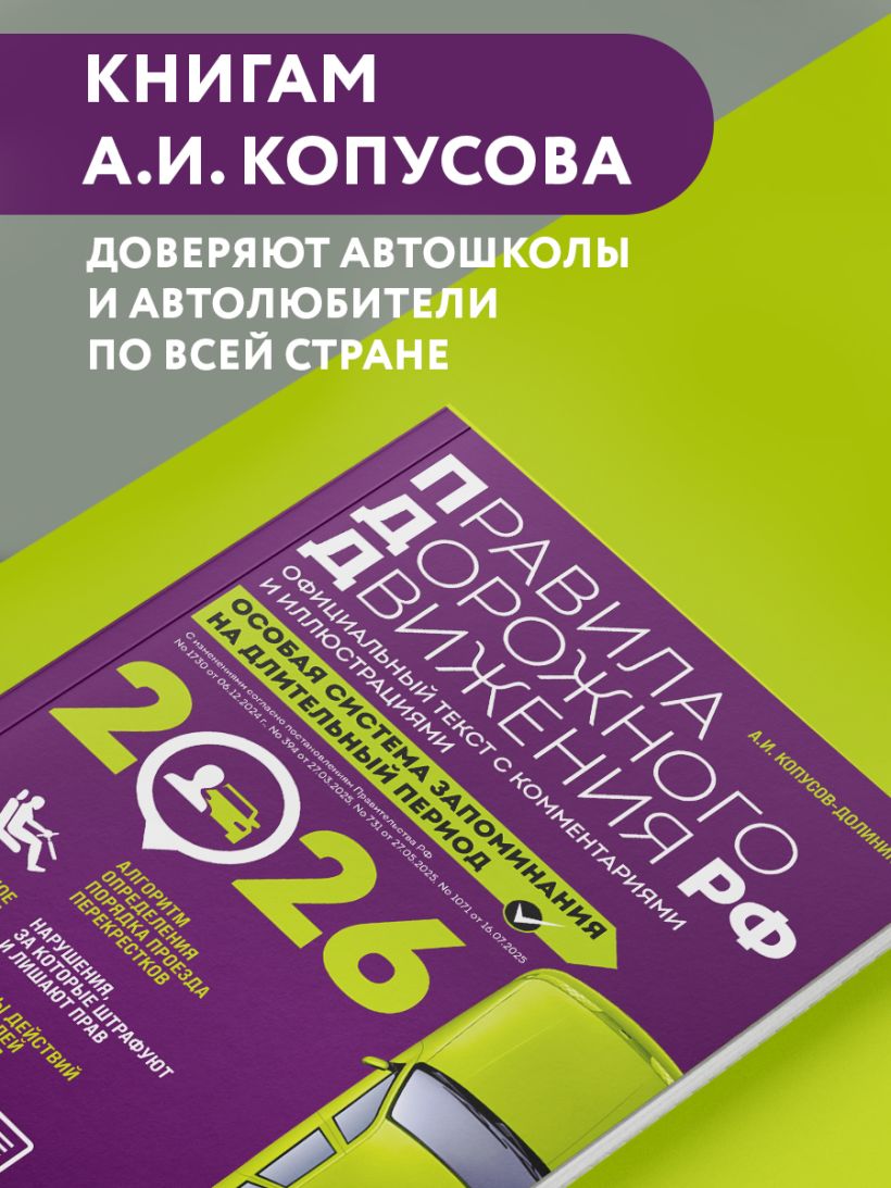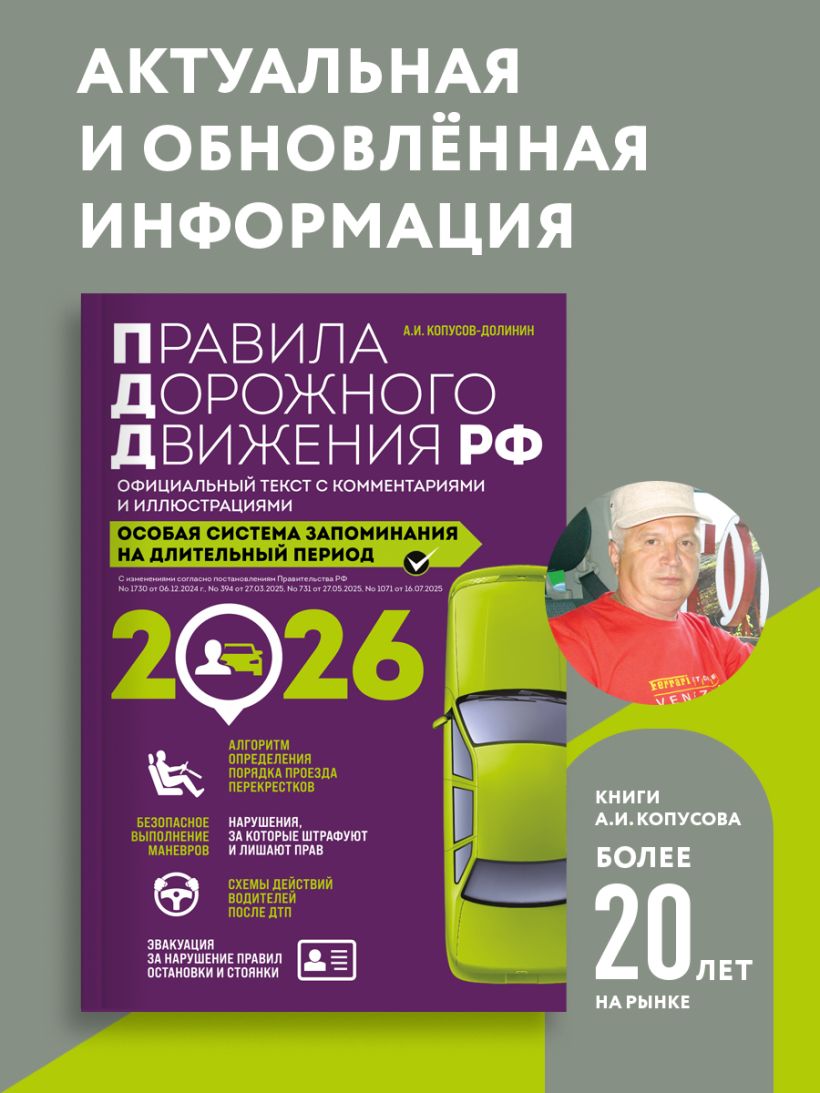 Издание содержит текст ПДД РФ в редакции, вступающей в силу с 2026 год, с авторскими комментариями, адаптирующими материал для широкой аудитории. Благодаря использованию особой методики запоминания текст Правил не нужно повторять снова и снова. Книга ориентирована на учащихся автошкол, начинающих водителей и тех, кто давно за рулем, но решил восполнить пробелы в своих знаниях.