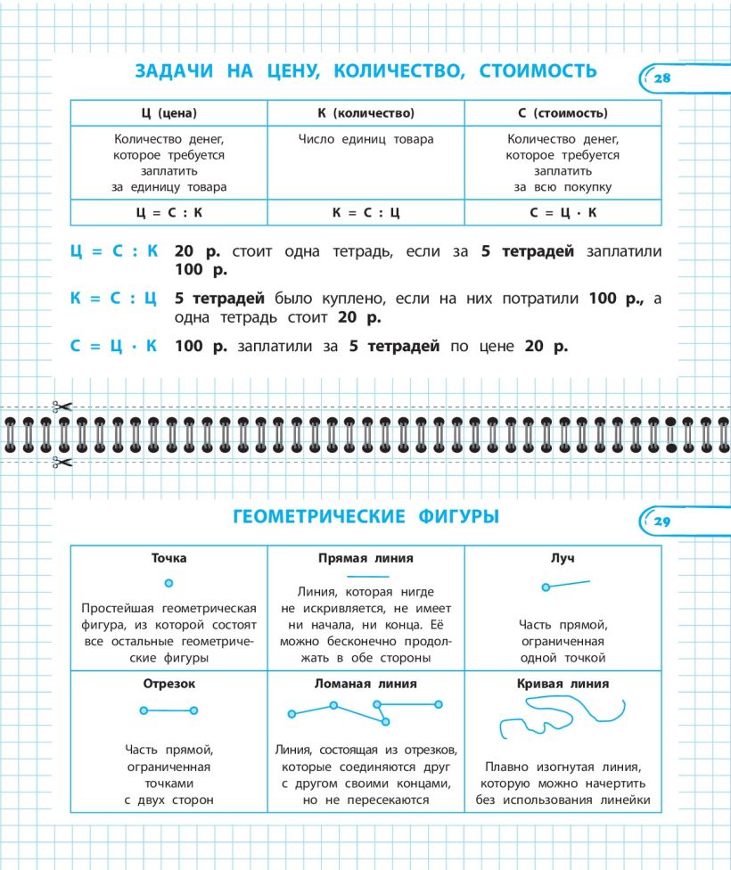Карточки на скрепке способствуют закреплению знаний, полученных в школе. В пособии представлены все основные правила по математике за курс начальной школы. Порядок тем соответствует школьной программе. Все правила изложены наглядно и доступно, а примеры и иллюстрации помогут школьникам лучше усвоить материал. Каждую страницу можно вырезать по пунктирной линии и использовать как карточку, с помощью которой можно будет быстрее и надежнее усвоить основные правила. Современное и удобное в использовании пособие соответствует требованиям ФГОС начального общего образования.