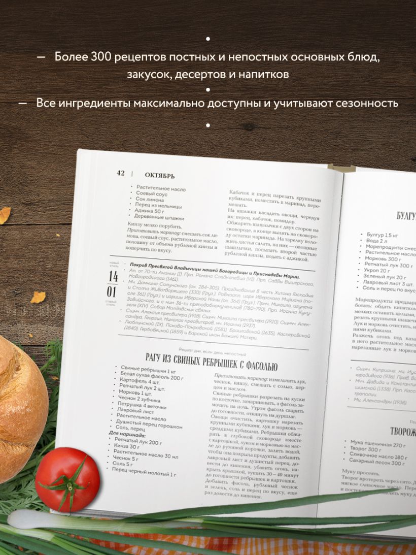 Уникальный сборник рецептов! В нем постные и непостные блюда распределены по числам календарного года и сопровождаются, как это принято в церковном календаре, именами святых, которых вспоминают в тот или иной день. Календарь недатированный!