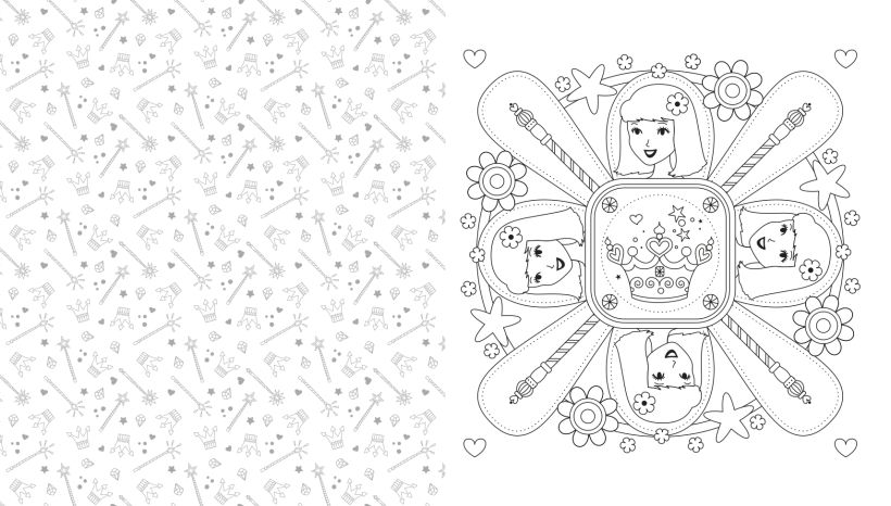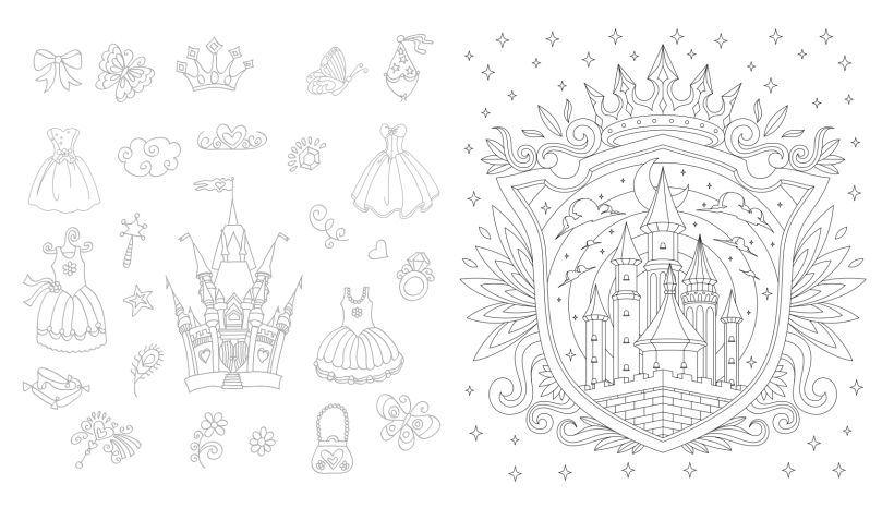 Почувствуй себя королевской особой, раскрашивая и создавая свои собственные варианты красивых нарядов, корон и цветов.