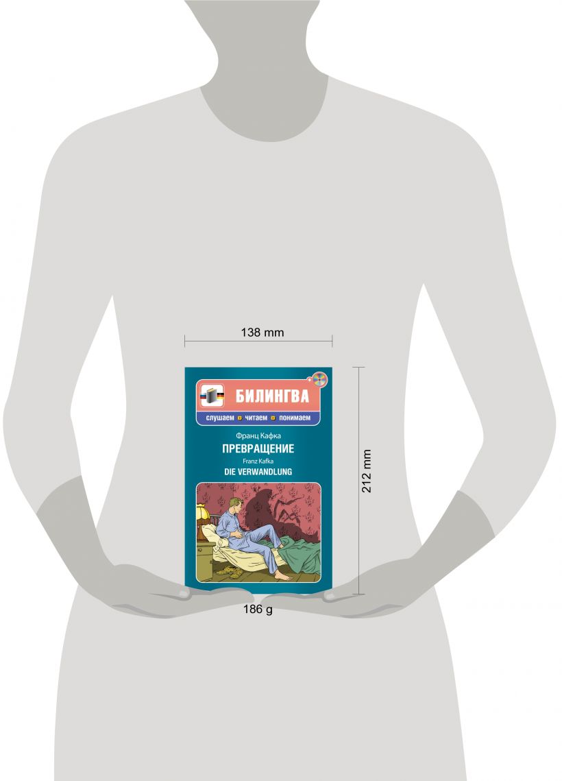 В этом комплекте из книги и аудиодиска, на котором текст читают немецкоязычный и русский дикторы, читателям предлагаются неадаптированный текст и классический перевод знаменитого рассказа Франца Кафки. История о невероятном превращении Грегора Замзы поражает удивительным сюжетом, сочетанием гротеска и тонкого психологизма и великолепным языком. Читая и слушая текст на немецком языке, обращаясь к классическому переводу, вы улучшите свои навыки чтения и восприятия на слух иноязычной речи.