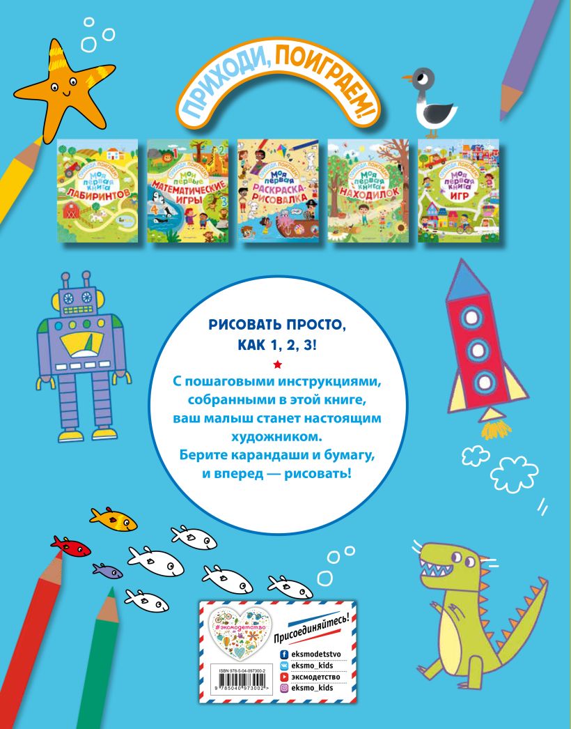 Теперь это не страшная просьба ребенка, а повод удивить его! С пошаговыми инструкциями, собранными в этой книге, и вы, и ваш малыш научитесь рисовать всё! С этой книгой вам гарантированы часы полезного и веселого досуга, ведь все маленькие дети любят рисовать. Как и взрослые. Но они когда-то решили, что не умеют этого делать. Смотрите на своих детей и вспоминайте, как это здорово и увлекательно!