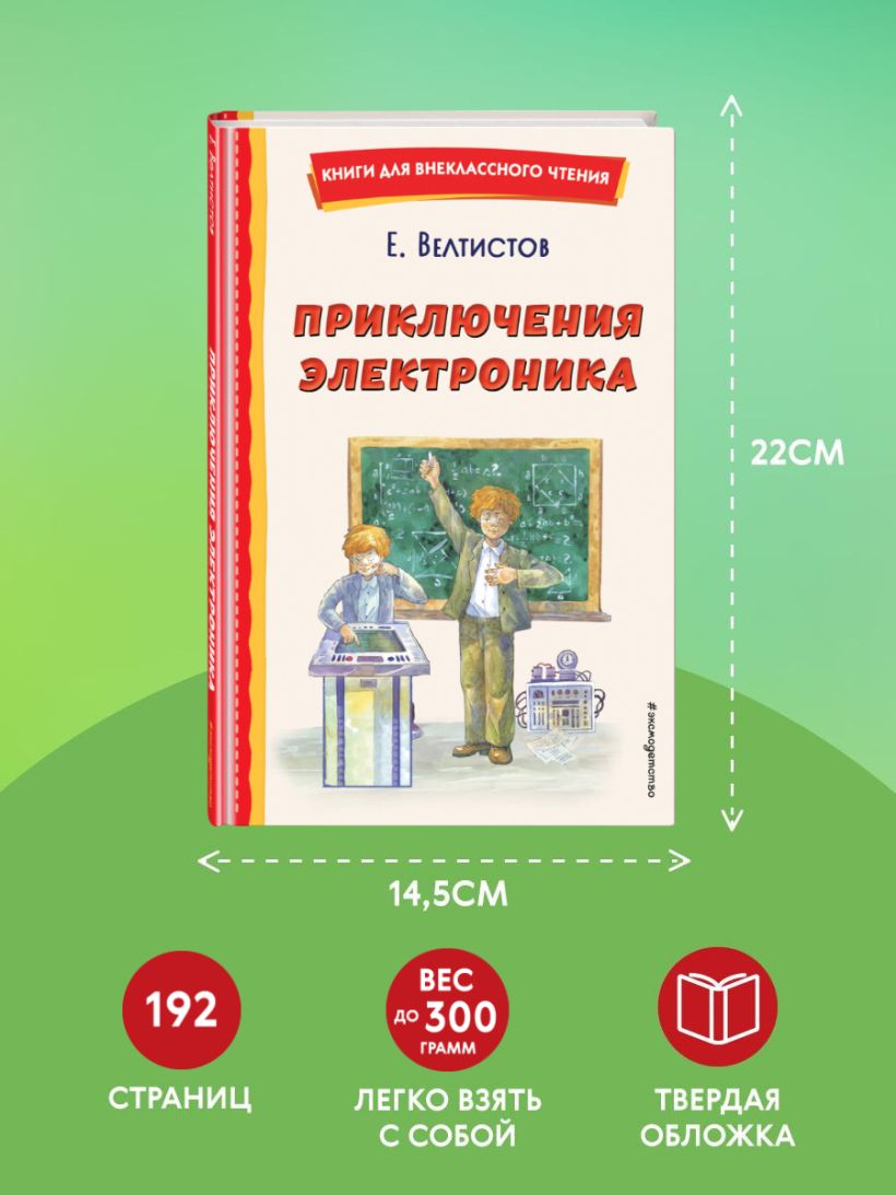 Повесть «Приключения Электроника» принесла Евгению Велтистову широкую известность и стала основой для любимого многими детского фильма. Это история о мечтательном и озорном шестикласснике Серёже Сыроежкине, который однажды встречает своего двойника, робота Электроника. Серёжа и Электроник становятся друзьями и попадают в целую череду весёлых и захватывающих приключений.