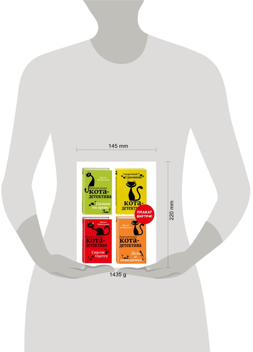 Комплект из четырёх книг серии «Приключения кота-детектива» и плакат с табличкой для вырезания в комплекте!