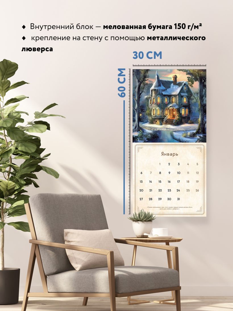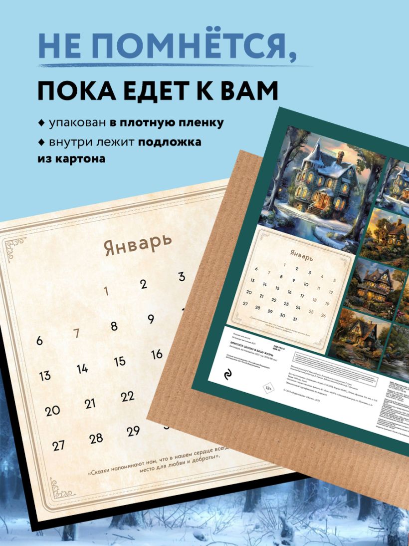 Теплый календарь со сказочными пейзажами с домиками и цитатами о добре, сказках и счастье. Всем нам хочется попасть в сказку, и с этим календарем есть возможность впустить ее в свою жизнь! Поможет успокоиться, расслабиться, вспомнить теплые деньки и поностальгировать о детстве и чем-то добром и прекрасном.
