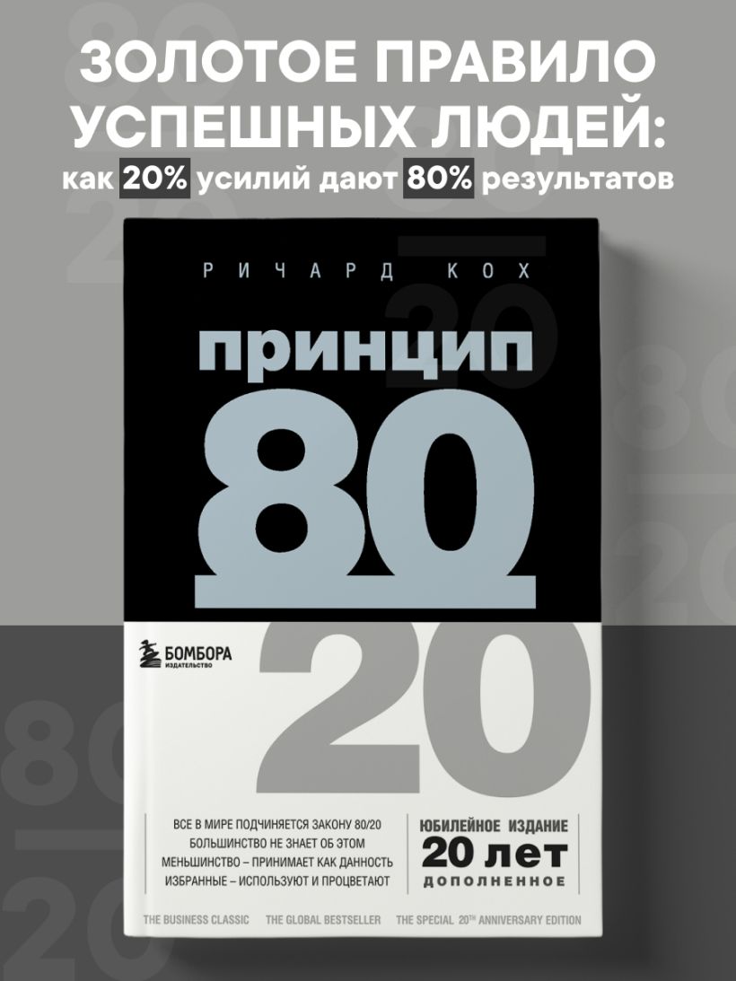 За 24 года с момента первой публикации книга «Принцип 80/20» стала классикой деловой литературы и мировым бестселлером. Ее автор, успешный бизнесмен и «ленивый предприниматель» (как называет себя сам Ричард Кох), рассказывает о том, как достичь большего — с намного меньшими затратами усилий, времени и ресурсов. Надо уметь сконцентрироваться на самых важных 20% вашей жизни. Поступая так, вы будете управлять событиями, а не наоборот — и получать во много раз более позитивные результаты, чем раньше.