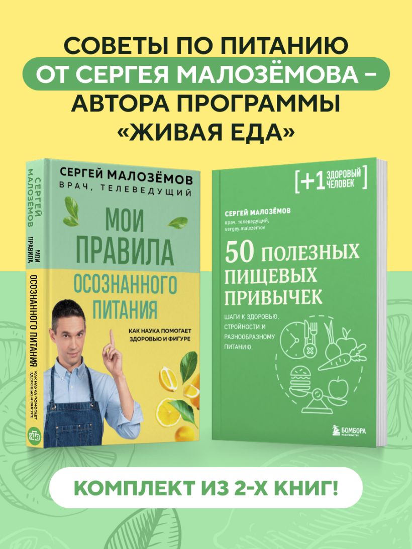 Комплект из 2-х книг Сергея Малоземова – врача, известного телеведущего, автора и создателя научно-популярной передачи "Живая еда".