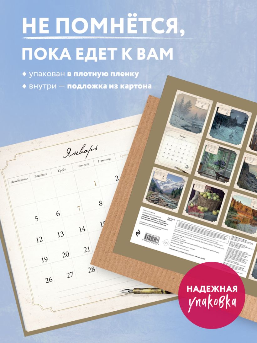 Календарь Татьяны Мужицкой с яркими иллюстрациями от Влады Коваль! В сетке — вдохновляющие цитаты автора и необычные праздники вроде «Всемирного дня “Спасибо”» и «Международного дня заботы о себе». Каждый месяц — как напоминание: жить можно с радостью, легкостью и любовью к себе. Совокупный тираж книг Татьяны Мужицкой — 360 000 экземпляров. Наши настенные календари отличаются высоким качеством исполнения! Тщательно подобранные иллюстрации, напечатанные на глянцевой бумаге высочайшего качества, станут настоящим украшением дома, а в календарной сетке найдется место для ваших планов: большие клетки позволят делать записи и организовать свой год! В серии настенных календарей издательства «ЭКСМО» каждый найдет тему по вкусу: великие художники, великолепные подборки с самыми знаменитыми произведениями искусства, легендарные кинематографические саги и игры, главные книжные авторы и бестселлеры, фотографии и иллюстрации любимых животных и многое-многое другое! Технические параметры: - Тип календаря — настенный перекидной. - Год — 2026. - Календарная сетка — с разбивкой по месяцам. - Вид скрепления — скрепка. - Ширина — 30 см. - Высота — 30 см. - Внутренний блок — мелованная бумага 150 г/м2. - Подложка — плотный гофрокартон для поддержания формы. - Индивидуальная упаковка в плотный целлофановый пакет.