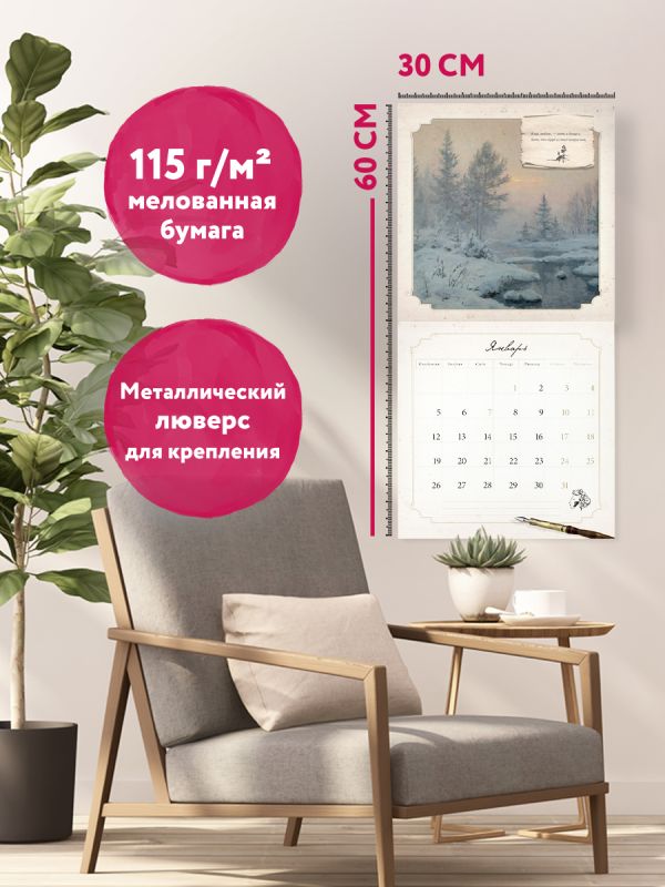Каждый месяц — новая строфа русского поэта, новая картина, соответствующая времени года и настроению, удобная календарная сетка и хорошее настроение!