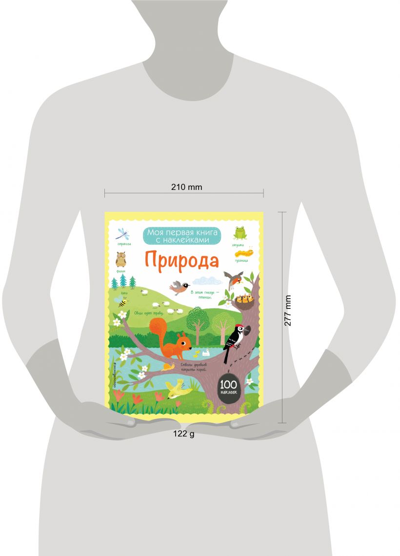 Книга «Природа» - это замечательная возможность для детей не только познакомиться с окружающим миром и узнать, нужны ли цветам пчёлы, кто живёт на дне моря, какая птица самая маленькая, но и весело провести время, приклеивая наклейки (а их в книге более ста!). Эти наклейки специально предназначены для маленьких ручек - они не имеют острых углов. Дети не будут испытывать трудности с их приклеиванием.