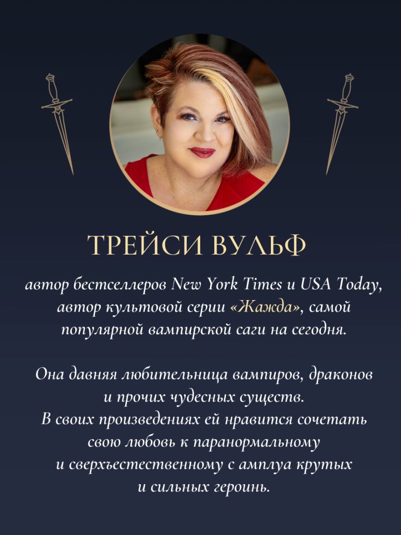 Трейси Вульф — автор бестселлеров New York Times и USA Today, из-под пера которой вышло более шестидесяти романов. Она давняя любительница вампиров, драконов и прочих чудесных существ.