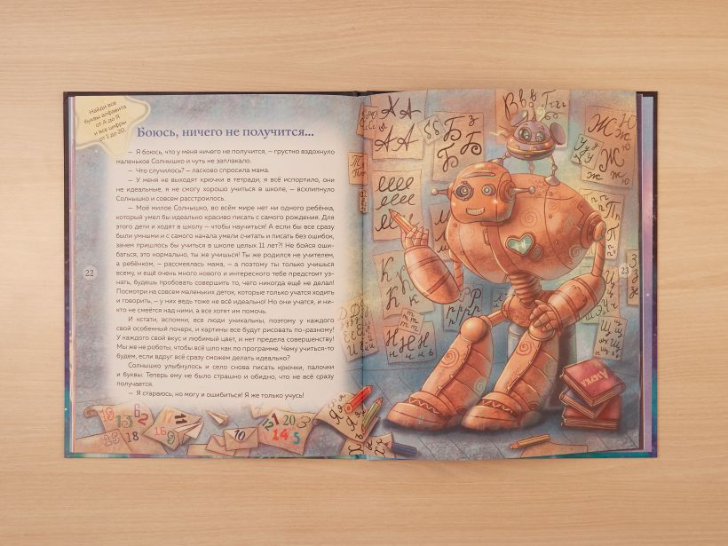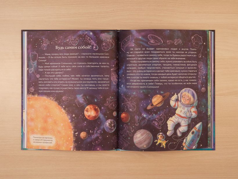 Читайте истории вместе с Солнышком, чтобы помочь ребёнку обрести уверенность в себе и раскрыть свои уникальные способности. Выполняйте упражнения и играйте на красочных страницах книги, чтобы развить внимание к деталям. Наблюдайте, как ваш ребёнок познаёт мир.