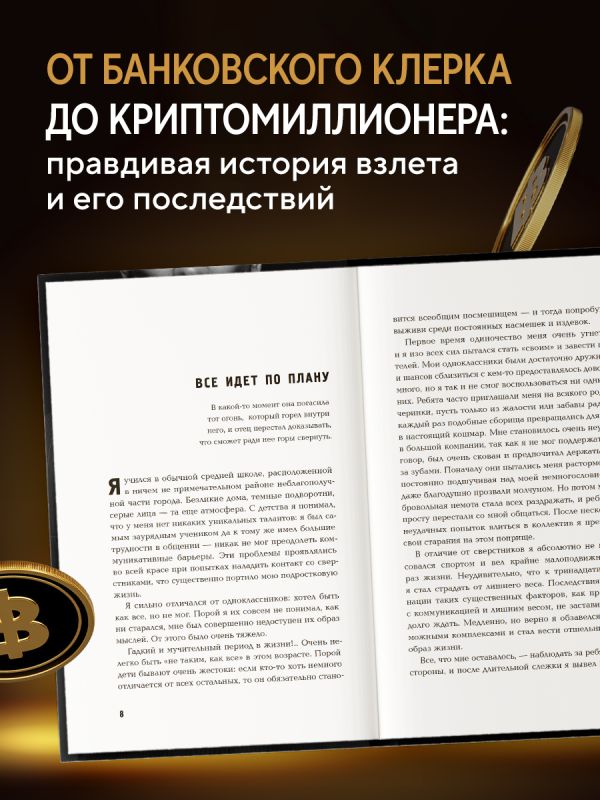 Каждая глава — это маленькая перемена в личности главного героя, которые напрямую завесили от курса биткойна. Несмотря на название, книга не совсем о биткоине. Книга об алчности, человеческой сущности и предательстве. О том, что готов отдать каждый из нас для достижения цели. Герой книги отдал за это все – близких, свою свободу, свою человечность, свою душу.