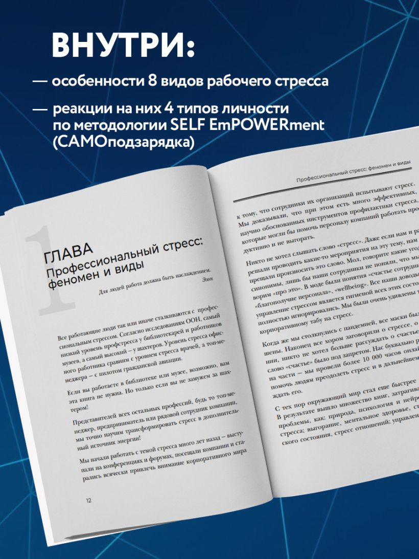 Это первая книга в нашей стране, которая рассказывает о специфике рабочего стресса и объясняет, как им управлять. Ее авторы создали научную методологию по развитию профессиональной жизнестойкости SELF EmPOWERment (САМОподзарядка), которая легла в основу этой книги и раскрывает особенности восьми видов рабочего стресса и реакции на них четырех типов личности.