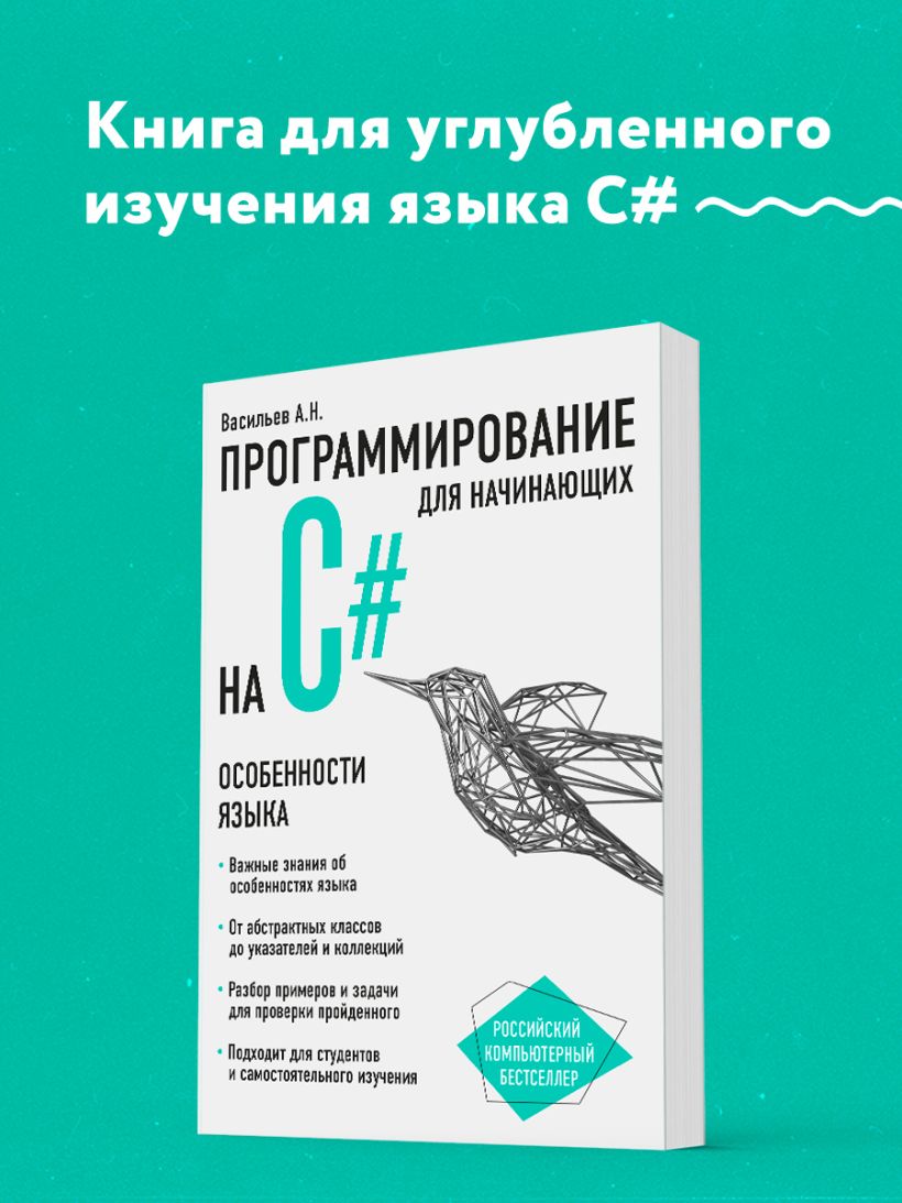 Первая часть самоучителя по C#, написанного известным российским автором учебников по программированию Алексеем Васильевым. В этой книге автор приглашает читателей ознакомиться с основами языка C#. Прочитав ее, вы узнаете историю языка, его структуру, ознакомитесь с типами данных и переменными, операторами, циклами и множеством другой полезной информации, необходимой для работы с этим языком. Книга содержит множество примеров и подробный разбор каждого из них, а также задания для самостоятельной работы. Самое главное: - Основные сведения о языке C# — от истории до создания небольших программ. - Подробный разбор каждой главы c примерами и выводами. - Все примеры актуальные и могут применяться в работе. - Доступный язык изложения, понятный новичкам. - Использована методика обучения, многократно проверенная на практике.