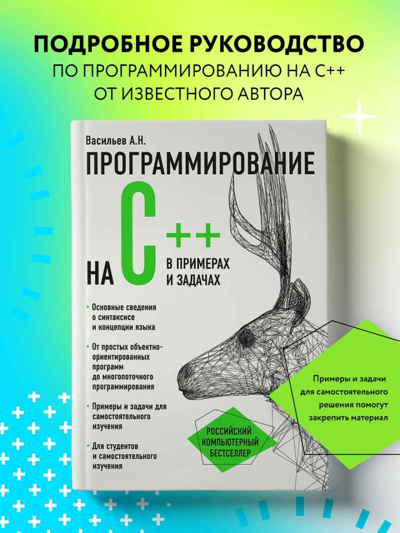 «Автомобили, роботы, компьютерные игры, нейронные сети, финансовые биржи — что объединяет эти, казалось бы, не связанные вещи? Все они используют код, написанный на C++. Данная книга — ключ в этот увлекательный мир науки и технологии. Автор начинает с самых базовых конструкций языка и постепенно подводит читателя к его глубинам, используя остроумные задачи, продуманные примеры и практически полезные алгоритмы в качестве иллюстраций». — Давыдов Павел Николаевич, senior software engineer, компания Devim