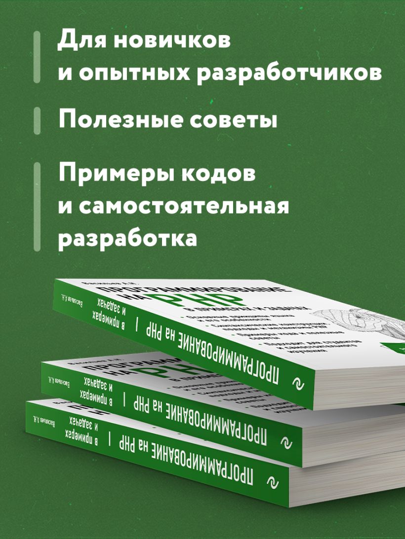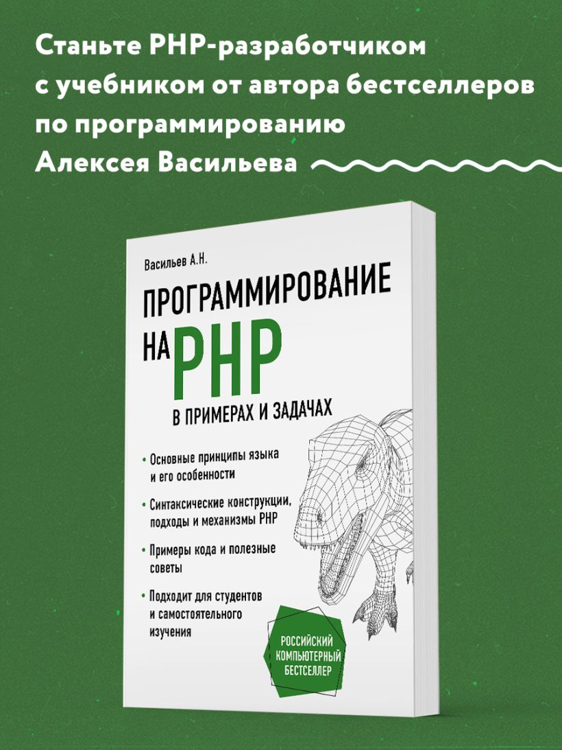 Стать PHP-программистом может каждый! В этой книге, написанной автором таких бестселлеров, как «Программирование на Java для начинающих» и «Программирование на C++ в примерах и задача»", Алексеем Васильевым, собраны абсолютно все необходимые для освоения языка знания. Автор подает информацию логично и структурированно — вы начнете с основ, позволяющих понять, как устроен PHP, познакомитесь со средами разработки для него и перейдете к освоению синтаксических конструкций и подходов, применяемых в программировании на PHP. Этот самоучитель подарит вам уверенность в собственных силах, ведь авторская методика Алексея Васильева строится на максимально понятном для новичков изложении даже самых сложных тем в программировании. Желаем успехов в обучении!